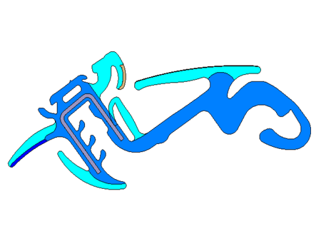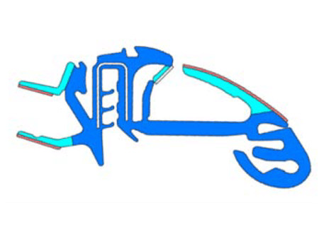 We extrude rubber and thermoplastics of choice on carriers made of metal or plastic. Up to 6 different materials can be extruded together to form a profile. Depending on the requirements, we apply decorative strips online or flock the profile. We have mastered the production of seals with variable wall thicknesses in order to reproduce complicated geometries on the vehicle.